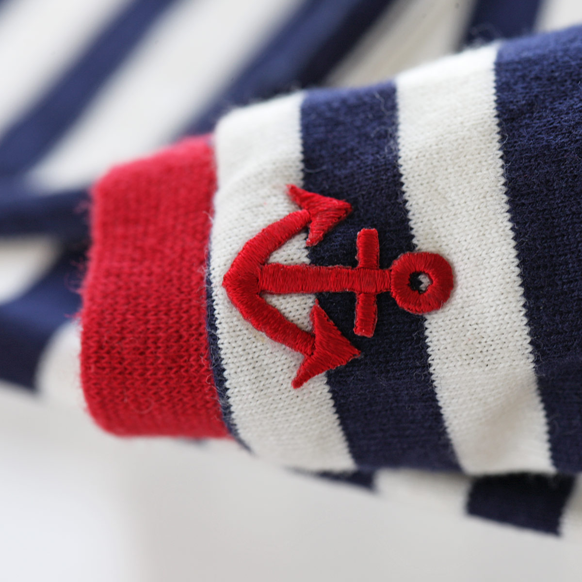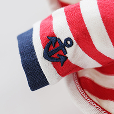 トリコカラーによくあうマリンをワンポイントに加えました。ロングスリーブの形を強調する為に袖にワッペンを。いつものイカリワッペンがグッと大人っぽくなって一層お洒落です。