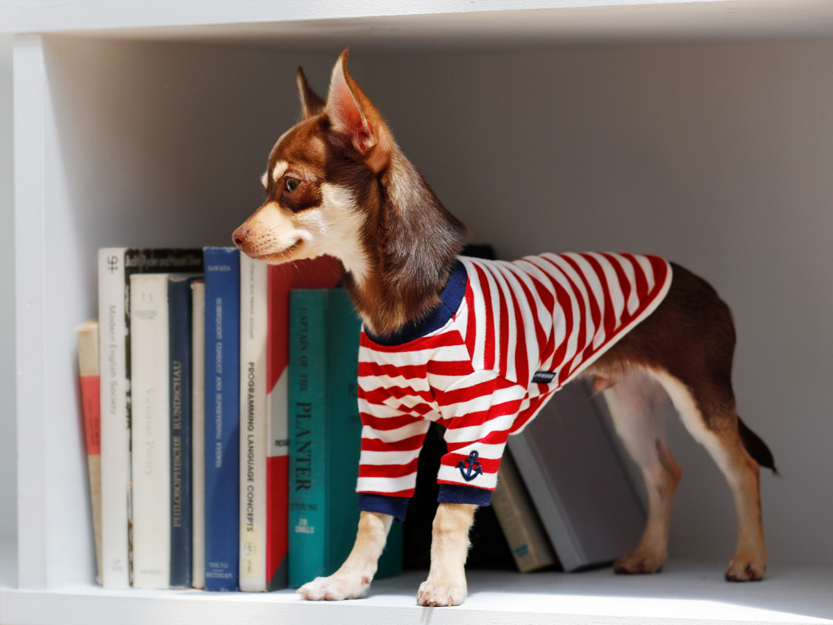 汚れ防止や冷房対策・抜け毛防止など幅広いライフスタイルに合うロングスリーブ仕様。袖があるのでスッキリ着られるスタイリッシュな1枚でワンちゃんとのハッピーライフに大活躍。
