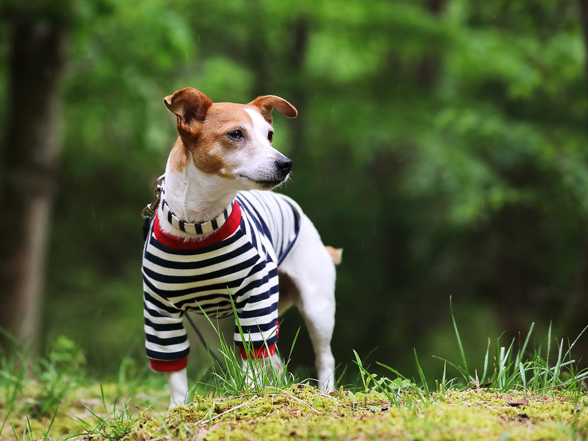 | モデル | ジャックラッセルテリア / 3号 体重4.5kg 首回り25cm 胴回り39cm 背丈28cm |